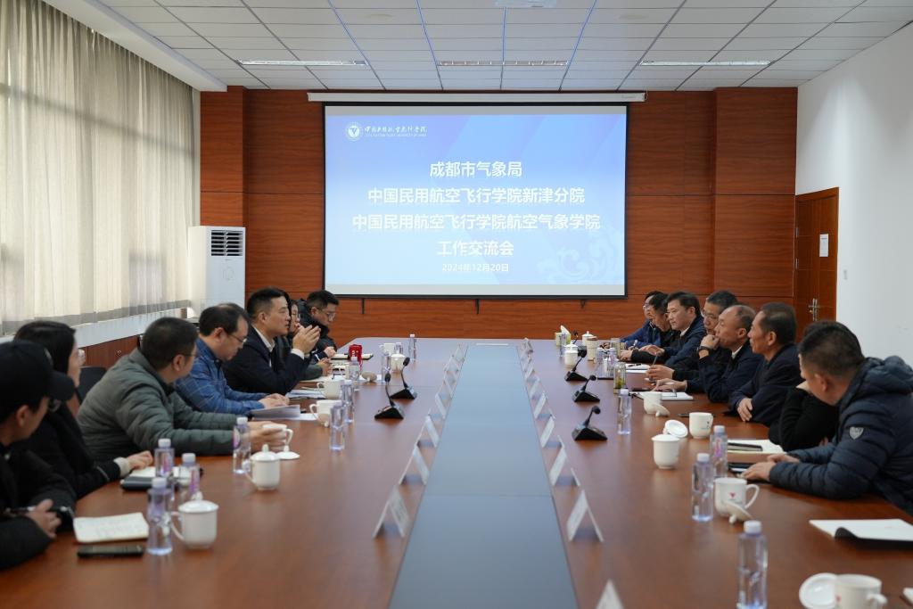 本网讯 曾理 张静 摄影报道 12月20日,成都市气象局携新津区气象局到新津分院调研交流,成都市气象局局长谭畅,新津区气象局局长李睿,中飞院航空气象学院党委书记高永蓉,新津分院党委书记吕少英、院长黄文彦出席座谈会,三方相关部门代表列席,会议由分院副院长唐世明主持。