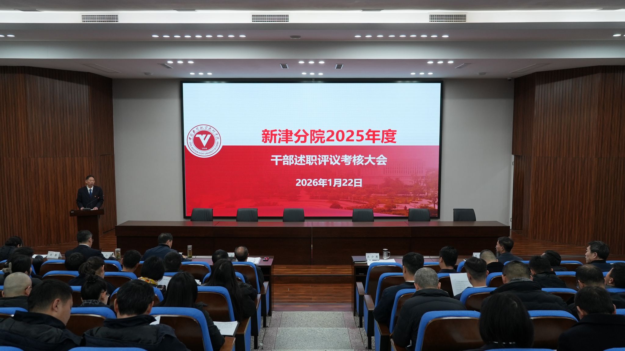 本网讯 俞丁畅 摄影报道 1月22日,新津分院党委在求是讲堂召开2025年度党委领导班子和处级干部及直属科(所)负责人考核测评大会、党总支书记抓党建工作述职评议考核会,同时开展2025年度干部选拔任用“一报告两评议”工作。学院纪委副处级纪检监察员贺洪成同志、党委组织部正科级组织员申建华同志到会指导,分院党委班子成员,各单位党政负责人,机关副科级及以上领导干部,运行保障部门科级干部和教职工代表等60余人参加会议。会议由分院党委书记吕少英主持。