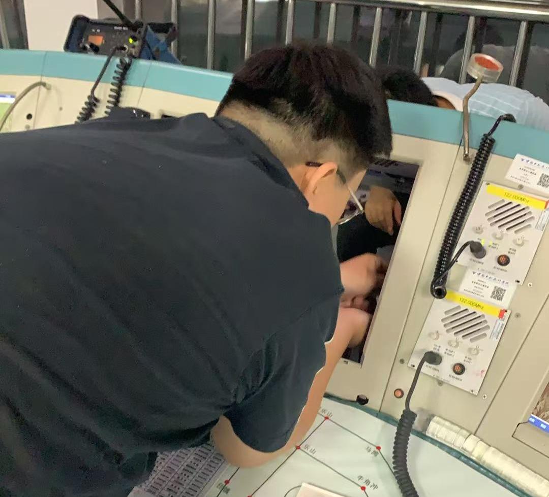 2025年,分院成功引接成都相控阵雷达信号,新一代网页版雷达产品显示终端系统上线试运行,该系统具备多图层显示和气象信息多元化呈现能力,为飞行指挥、空管保障提供了更精准、全面的气象数据支撑。因该系统需要在高性能计算机上运行,分院北塔台指挥席位的原有计算机运行与显示性能下降,不能满足系统需求。空管站组织通导科、气象台技术人员开展了雷达信号分接、国产替代计算机技术攻关与运行测试,在完成前期准备的基础上,4月19日晚停飞后,通导科技术人员迅速集结,利用夜间窗口期展开主机与显示器安装工作。由于设备迭代,新显示器与现有指挥桌尺寸不完全匹配,安装固定面临较大挑战。技术人员迎难而上,细致研讨安装方案,逐一克服尺寸适配与固定难题,于当晚11点半顺利完成显示器的更换与调试。